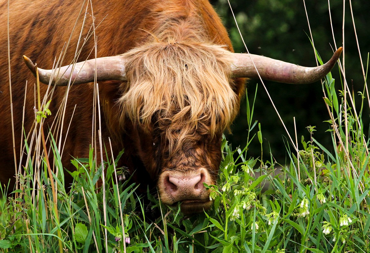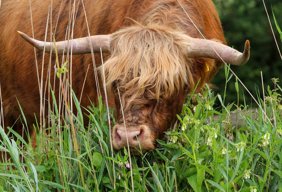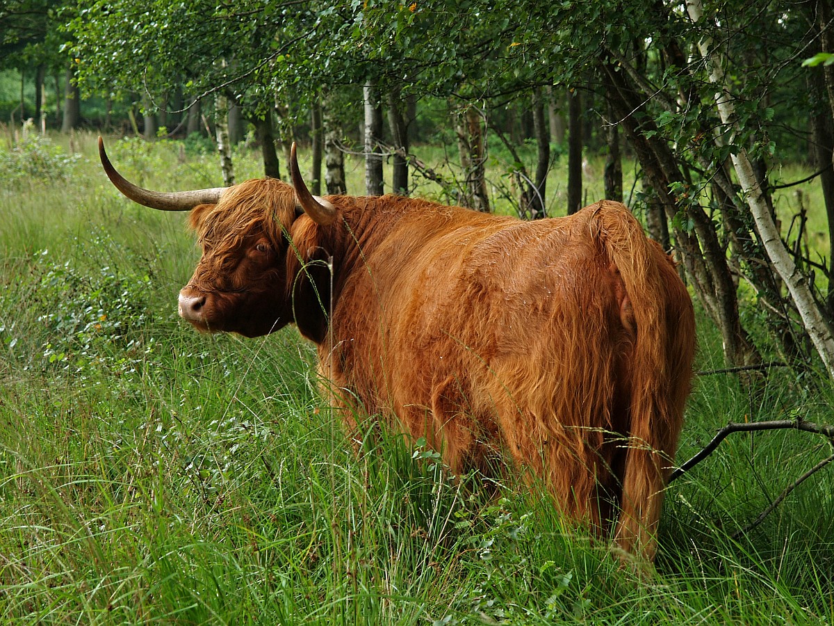 Highland Cattle 31, Schotse hooglander, Saxifraga-Rudmer Zwerver.jpg Highland cattle emerging from the forest Highland cattle emerging from the forest
